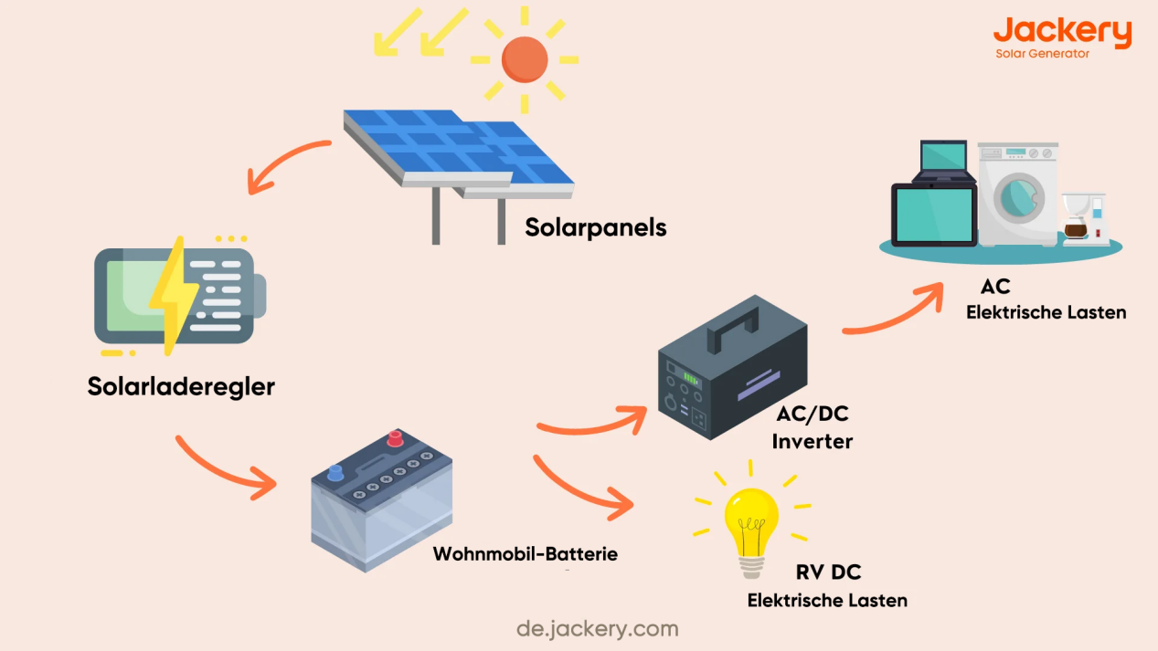 Wenn das Solarpanel richtig montiert ist, benötigen Sie viel Sonnenlicht, um das Beste aus einem Solarpanel herauszuholen. Wirksame Solarpanels werden flach auf dem Fahrzeugdach montiert. Bei vielen Wohnmobilausbauten ist dies die bevorzugte Position. Ein Solarsystem für ein Wohnmobil besteht normalerweise aus vier Komponenten: einer Powerbank, einem Solarpanel, einem Laderegler und einem Wechselrichter.