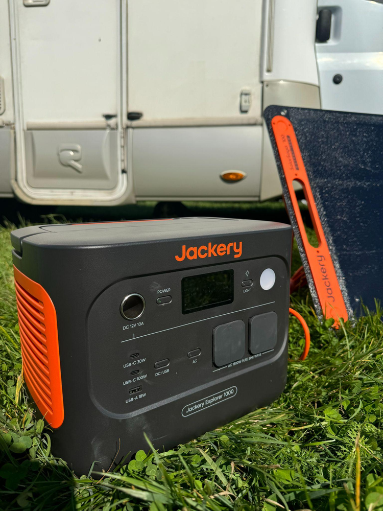 Jeden Freitag nehme ich eine vollständig aufgeladene Jackery mit. Sie versorgt mein Handy, meinen Rennzeit-Transponder, einen Haartrockner und sogar einen Heizlüfter im Wohnmobil mit Strom. Sie ist meine absolute Stromquelle für alles. Wenn die Ladung knapp wird, schließe ich einfach das SolarSaga 100 Solarpanel an, und schon kann es weitergehen.