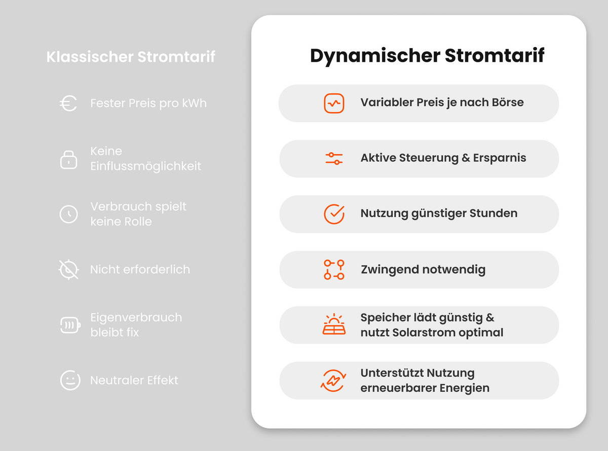 Dynamische Stromtarife bieten mehr Sparpotenzial und Transparenz als klassische flexible Preise. Sie orientieren sich direkt an den stündlichen Börsenpreisen, sodass du deinen Verbrauch gezielt in günstige Zeiten verschieben kannst. Flexible Strompreise haben meist nur wenige Preiszonen (z. B. Tag/Nacht) und dadurch geringere Einsparungen, sind aber einfacher zu nutzen.
