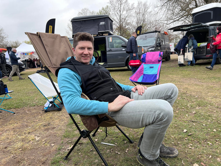 2022 entschied er sich, alles zu verändern. Ein Freund vermittelte ihm eine neue Rolle als Event-Marketer bei Helinox, einem Hersteller für ultraleichtes Outdoor-Equipment. Heute unterstützt er dort das Event-Team – er betreut Messestände, koordiniert vor Ort und ist für Licht, Aufbau, Technik und Atmosphäre zuständig. Nebenbei im Alltag ist Christian auch technischer Redakteur.