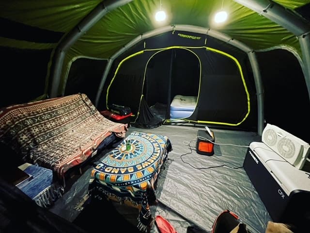 Ich verwende das Jackery-Batteriesystem, um meinen Dometic-Gefrierschrank, mein Telefon und andere elektronische Geräte mit Strom zu versorgen. Bevor ich Jackery in meinem Zelt verwendet habe, habe ich dieses Solarkraftwerk und die Paneele benutzt, um meine Geräte auf einem fünf Hektar großen Grundstück in Colorado mit keiner Stromversorgung zu betreiben.