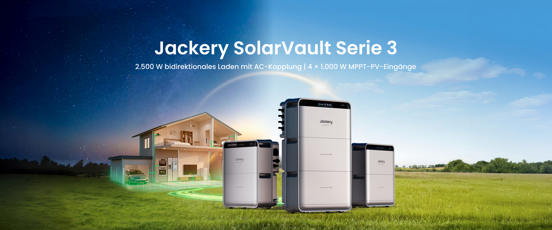 Genieße saubere, zuverlässige Energie – wann und wo du sie brauchst. Die Jackery SolarVault Serie 3 passt sich Balkon, Garten, Garage oder Außenbereich an.