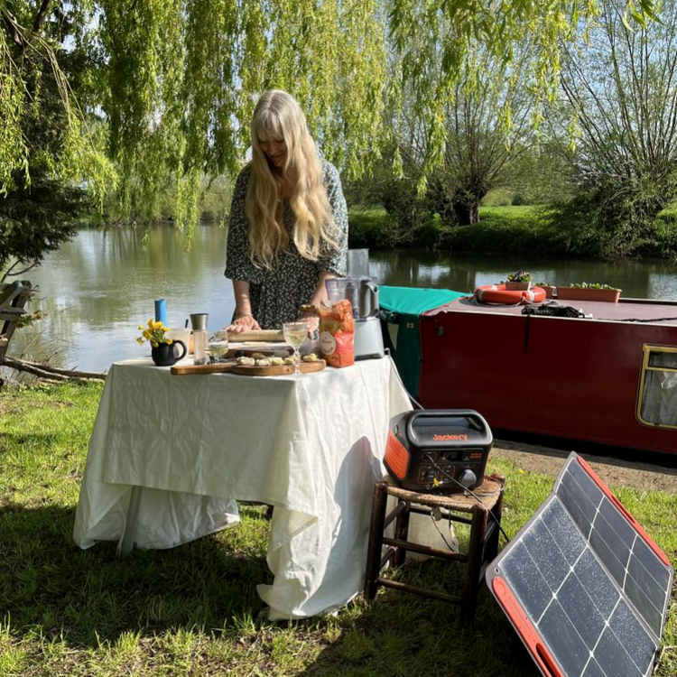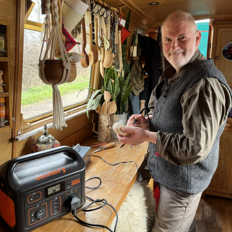 Wir haben den Jackery 500, und er war wirklich eine Bereicherung für uns. Wir haben bereits zwei Solarmodule an Bord, aber wir lieben den Jackery, weil er auch tragbar ist und wir ihn auf Reisen mit unserem Van mitnehmen können. Es ist so wichtig für die Umwelt, auf einem Boot autark zu sein, da wir sonst unsere Freizeitbatterien des Bootes verwenden müssten, die in der Regel mit Diesel betrieben werden. Marlon nutzt den Jackery für seine Holzhandwerkskunst, um seine elektrischen Sägen aufzuladen und für all unsere anderen Geräte an Bord, wie Handys und Laptops. Ich habe sogar einen Plattenspieler, den ich mit dem Jackery 500 auflade.