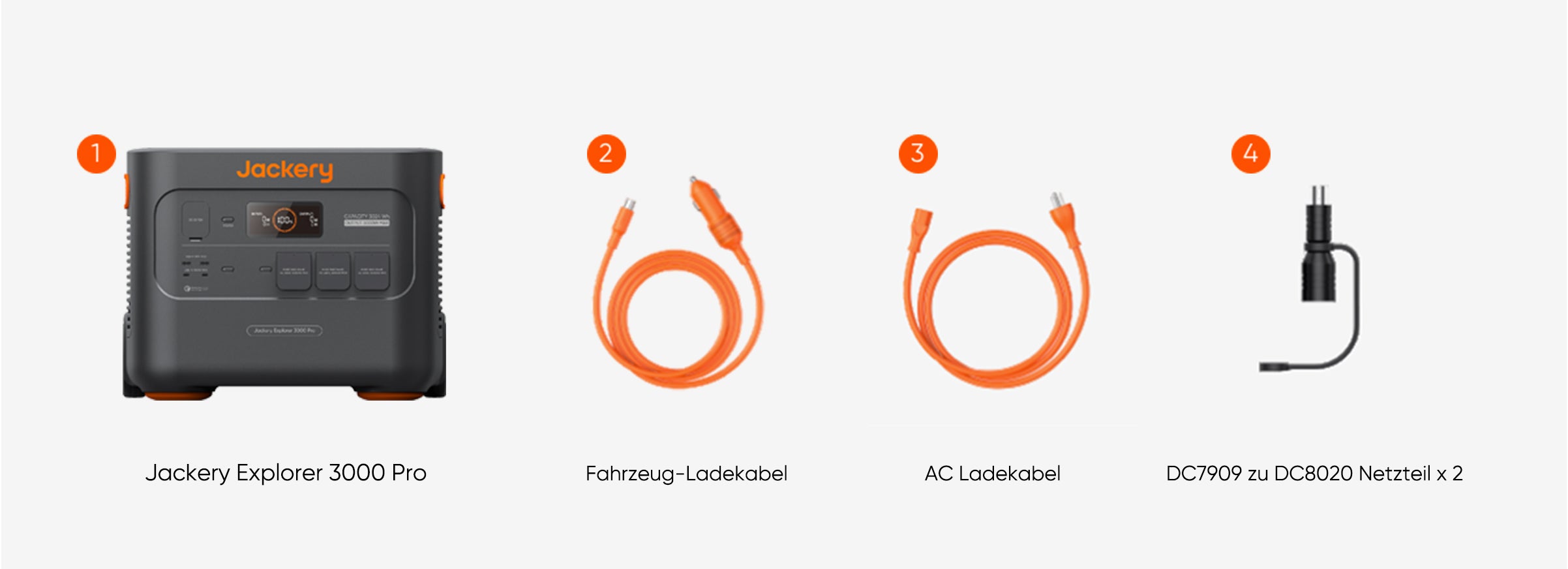 Ja, in der Verpackung des Explorer 3000 Pro sind alle Ladekabel enthalten, Sie brauchen keine zusätzlichen Kabel zu kaufen.