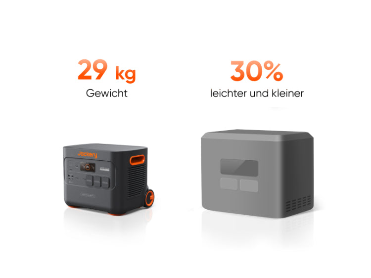 Mit einem Gewicht von nur rund 29 kg ist der völlig neue Explorer 3000 Pro von Jackery 30% leichter und kleiner als vergleichbare Produkte mit derselben Kapazität.