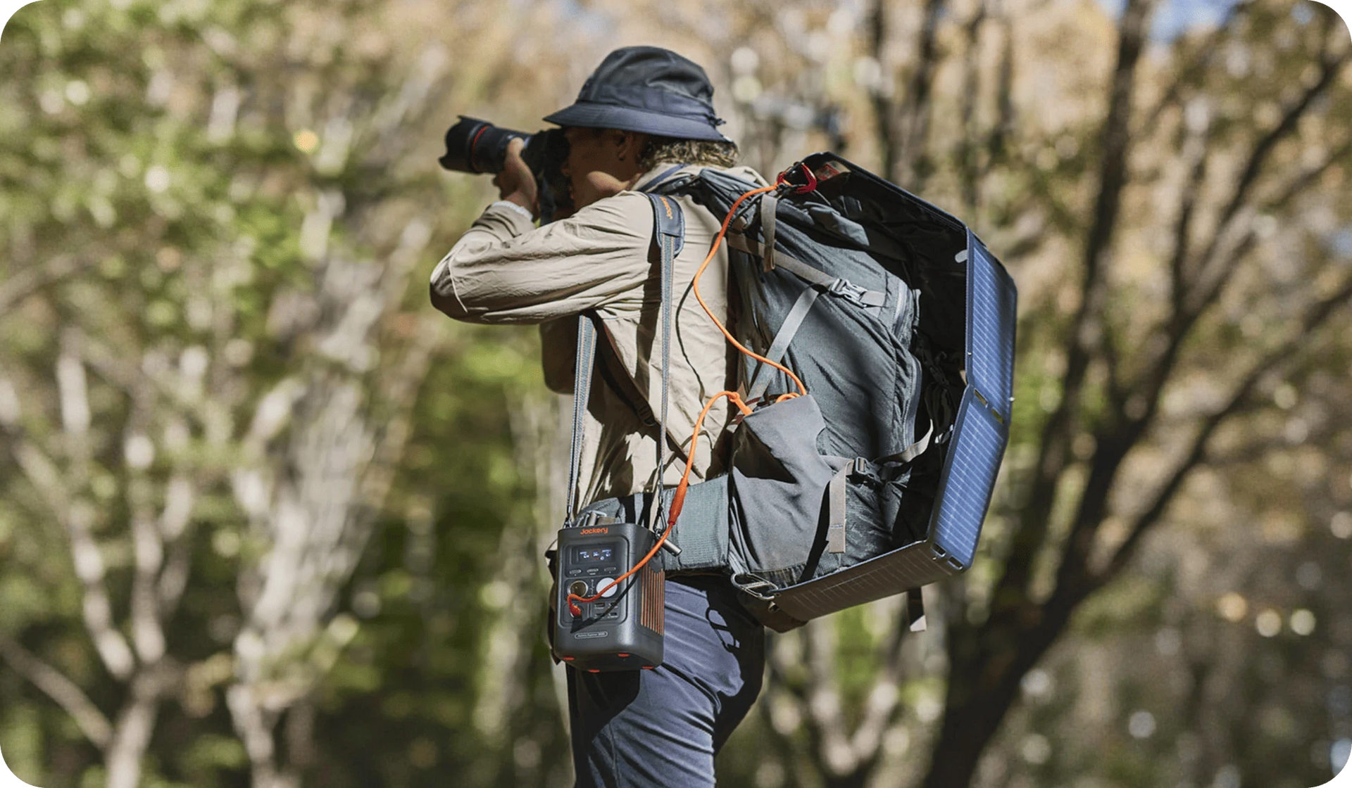 Kombinieren Sie den E300D Powerbank mit dem kompakten, faltbaren 40-W-Solarpanel für müheloses, intelligentes Nachladen, wo immer Sie sind. Robust und einfach am Rucksack oder Fahrrad zu befestigen, liefert es kontinuierlich Solarenergie – auf jedem Abenteuer.