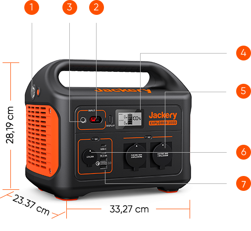 A: Bitte beachte, dass die AC-Ausgänge nur Geräte laden/betreiben können, die mit weniger als 1000 Watt arbeiten, außerdem sollte die gesamte Wattzahl der Powerstation (für alle Ausgänge) ebenfalls unter 1000 Watt liegen. Sobald dies überschritten wird, schaltet sich die Explorer 1000 automatisch ab.