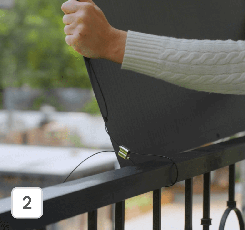 Führen Sie das Panel über das Geländer. Ziehen Sie schließlich die Seilklemme fest.