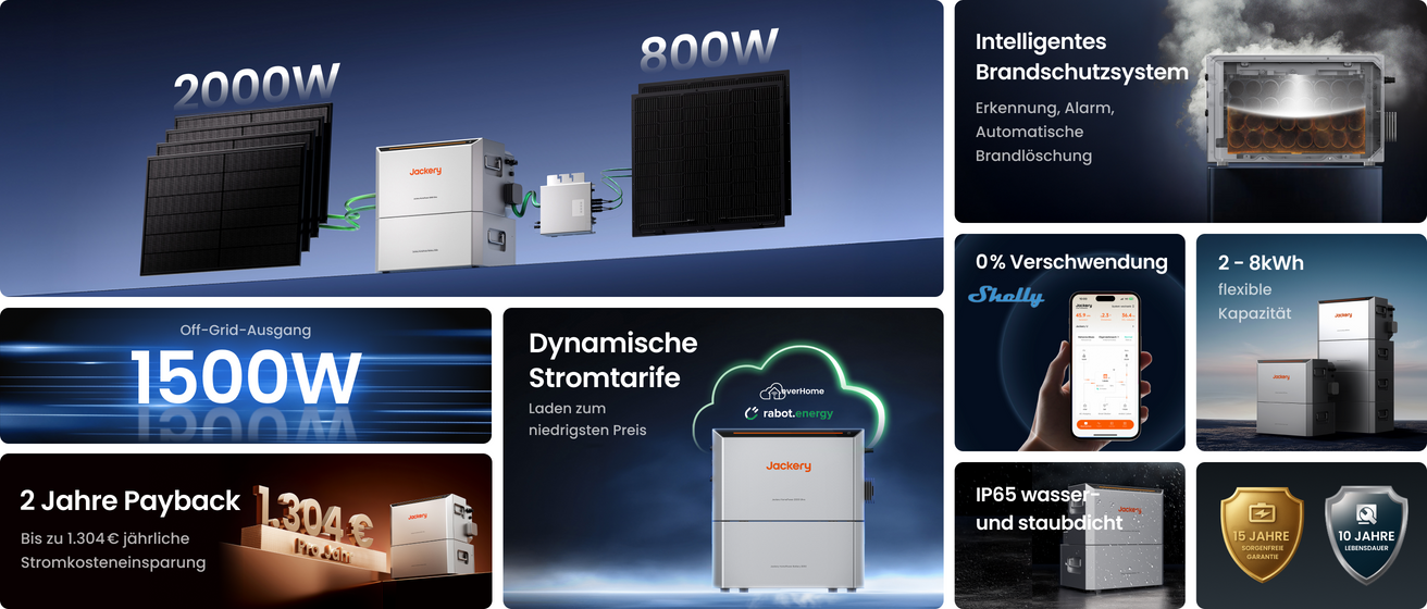 Der Jackery 2000 Home ist ein gutes Gerät, also ich bin sehr zufrieden. Außer mit den Paneelen, okay es ist für einen Balkon ist das sehr gut. Bei mir könnte ich auch normale Paneele holen, aber Jackery arbeitet ja auch mit normalen Paneelen, daher bin ich mit dem Akku, Zusatzakku sehr zufrieden. Der Shelly finde ich schade, dass er nicht zusammen mit dem Jackery arbeitet. Ansonsten ist das Gerät top 100% zu empfehlen.