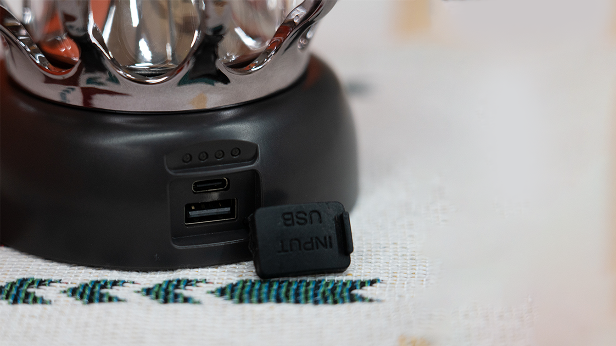 USB-wiederaufladbar mit integrierter Batterie: Angetrieben von einer integrierten 18650-Lithium-Ionen-Batterie bietet diese Laterne bis zu 8 Stunden ununterbrochene Nutzung und verfügt über Ein-/Ausgänge zum Aufladen von Geräten in Notfällen.